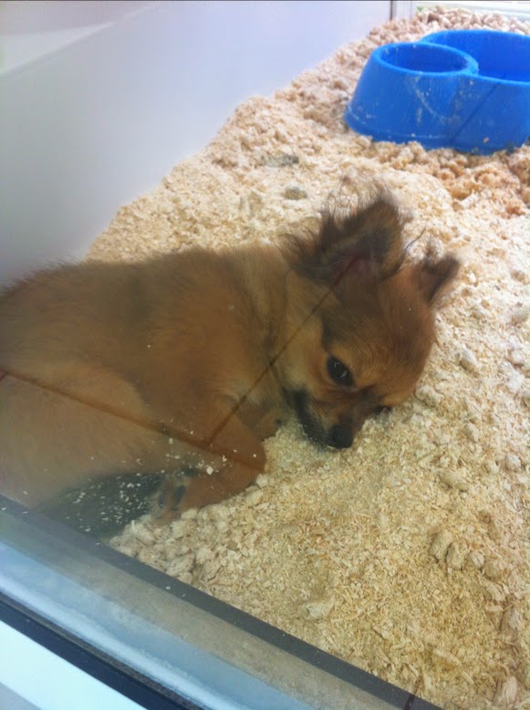 "Puiutul de chiuaua de la Palas a aparut din nou. Pt ca lucrez in zona il vad aproape zilnic. Pentru cei ce nu stiu: micutul asta sta de 2 luni in cutia de plastic, 2 luni s-a zbatut la geam non-stop, cu ochii in lacrimi. Apoi s-a facut aici scandal, au fost probabil anuntati de potentiale controale. Puiul mic a disparut circa o saptamana. Azi a reaparut. Acum nu se mai zbate. Nu mai plange. Sta facut covrig, rahitic, inert. Ce facem in cazurile astea? Politia animalelor pare a fi o gluma proasta din moment ce nu au facut nimic. Sa strangi bani si sa cumperi puiul? Nu faci decat sa ii incurajezi sa mai aduca pui fatati in cine stie ce conditii mizere, de femele folisite doar pt asta de samsari jegosi ce nu au alt scop decat sa isi umfle buzunarele. Am putea incerca macar o campanie anti-Animax, pt ca tin puii in conditiile alea si pt ca fac viata usoara samsarilor"